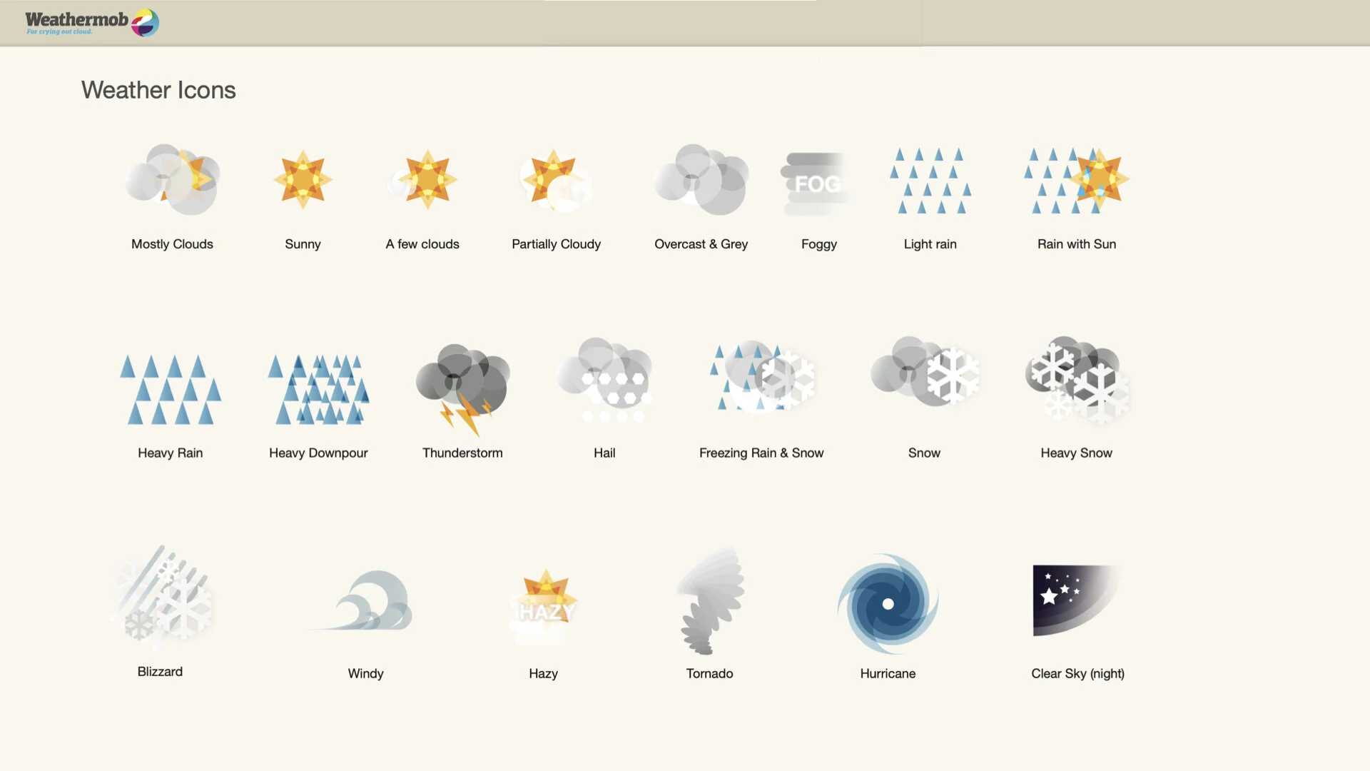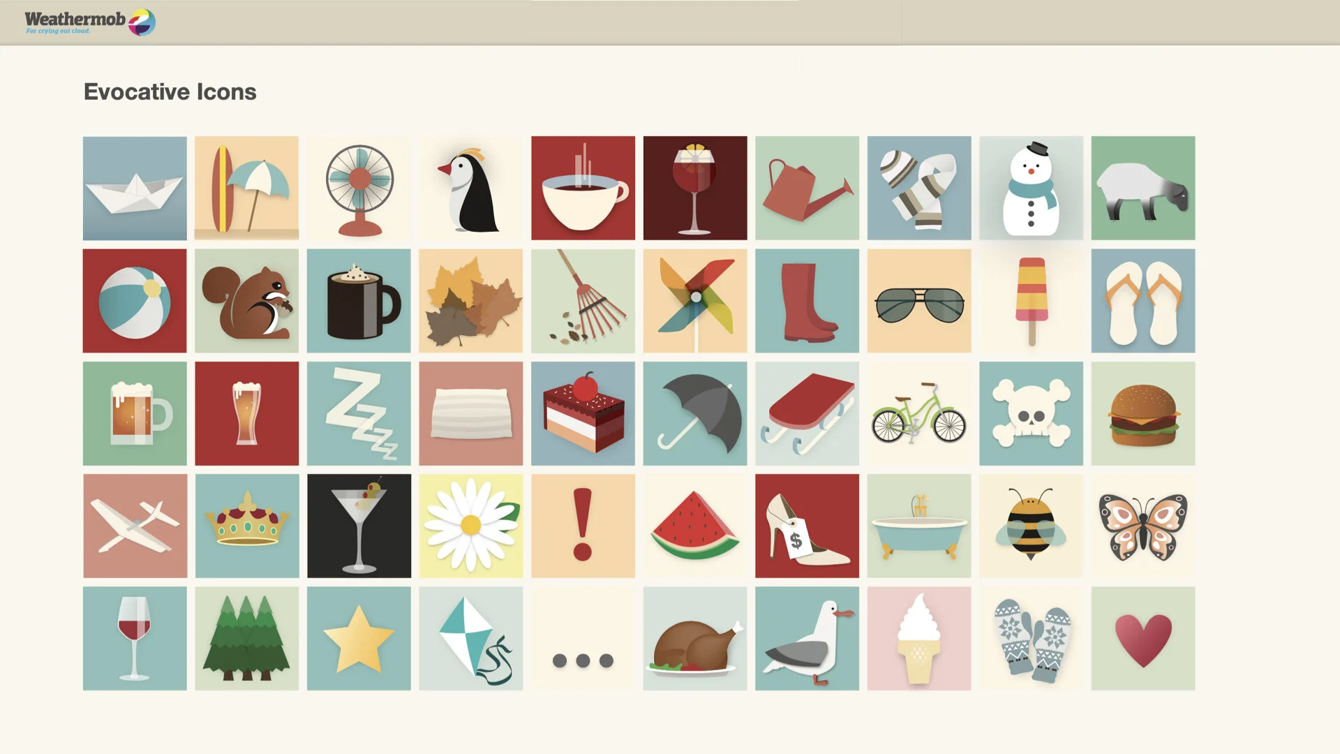 We designed hundreds of collections of pictogram icons to ensure no matter what language you spoke or could read, you could participate in Weathermob.